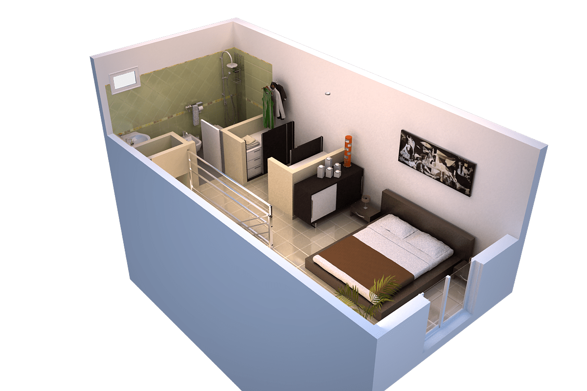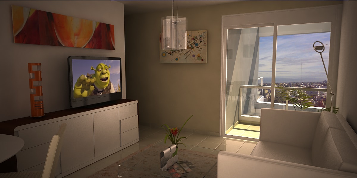| Paredes enlucidas en yeso, con aberturas de aluminio y cortinas tipo "Black out" en estares y dormitorios |