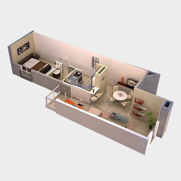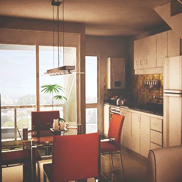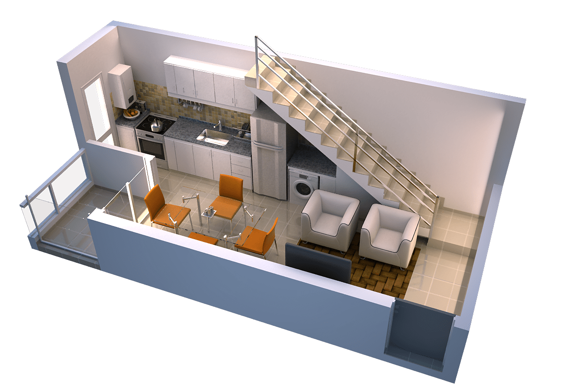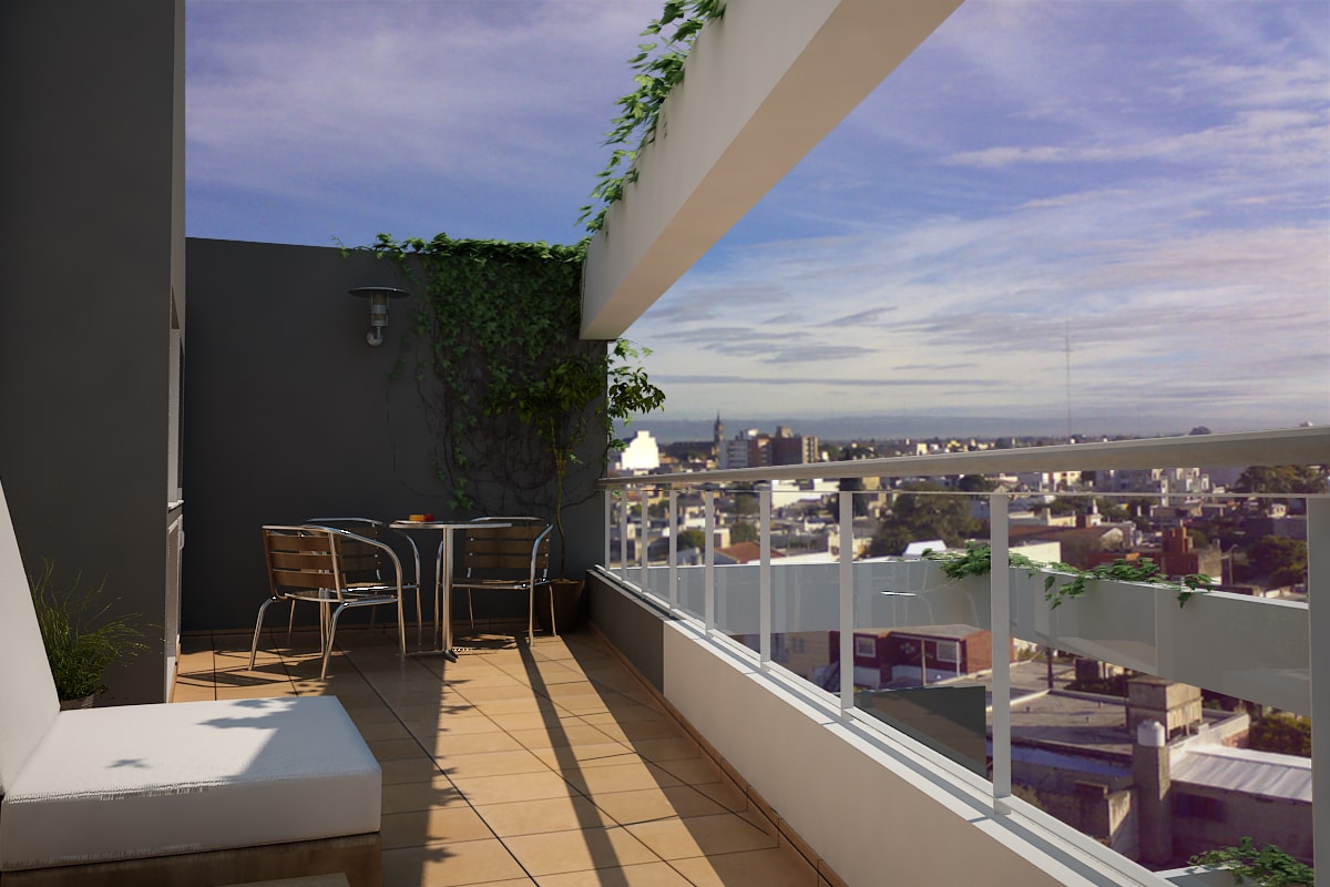 | Amplios departamentos con patios, balcones y terrazas con cielorraso de madera |